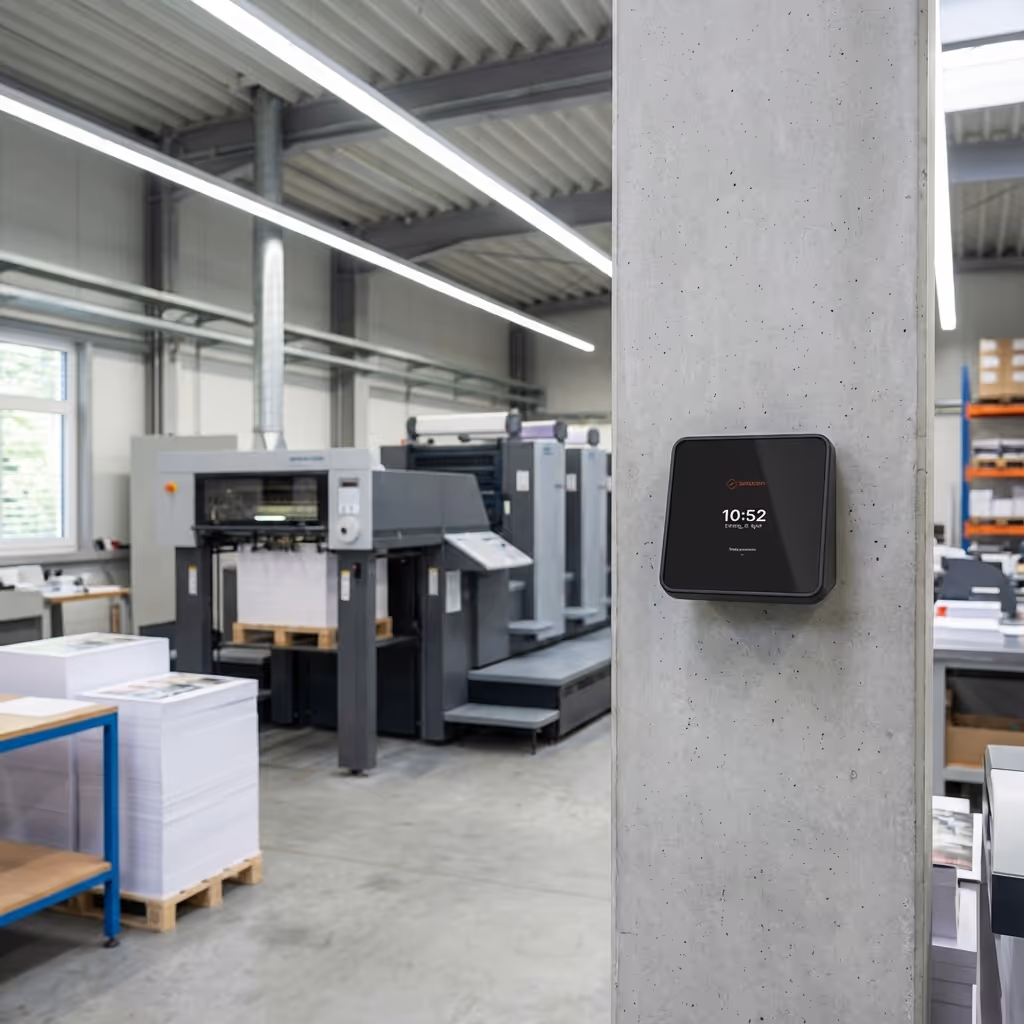 Zeiterfassungsterminal direkt in der Druckerei – Einstempeln, weiterdrucken