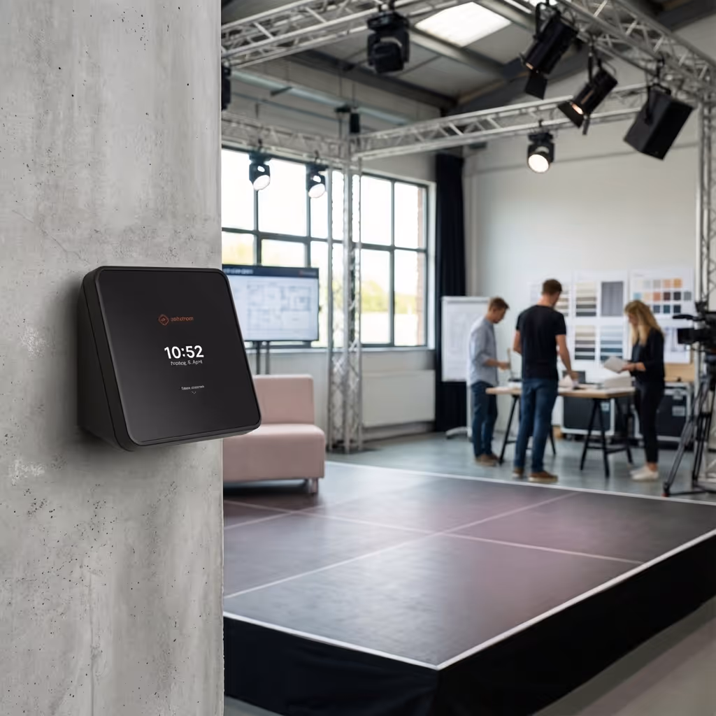 In vielen Eventagenturen steht das zeitstrom Terminal dort, wo alle täglich vorbeikommen: am Eingang zum Büro, im Lager bei Technik und Deko oder direkt im Produktionsbereich. Mitarbeitende halten einfach ihren Chip oder Code an das Terminal und stempeln Kommen, Gehen und Pausen in Sekunden – ganz ohne Zettel oder Nachtragen. Bei häufig betreuten Locations kann sogar vor Ort ein Terminal installiert werden, damit dein gesamtes Team seine Zeiten direkt an der Event-Location erfasst.