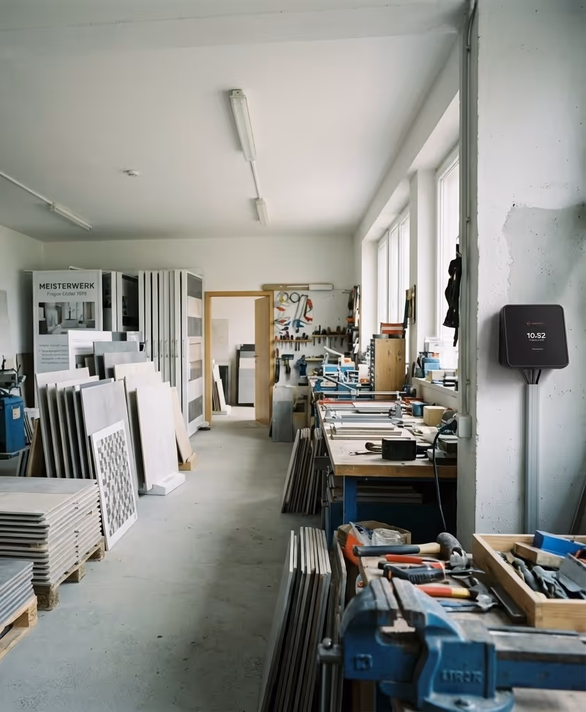 Zeiterfassungsterminal für Fliesenleger – einstempeln, loslegen, fertig