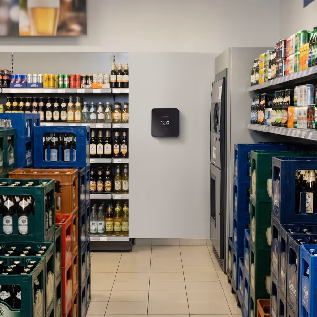 Im Getränkefachmarkt hängt das zeitstrom-Terminal dort, wo dein Team ohnehin vorbeikommt: zum Beispiel im Mitarbeitereingang, neben der Personaltür ins Lager oder im Pausenraum. Beim Betreten oder Verlassen des Marktes stempeln sich Mitarbeitende in wenigen Sekunden ein oder aus, Pausen werden ebenso einfach erfasst. So laufen alle Arbeitszeiten aus deinen Filialen zentral in einem System zusammen – ohne Zettel, ohne Nachtragen und ohne Erklärungsbedarf für neue Kollegen.