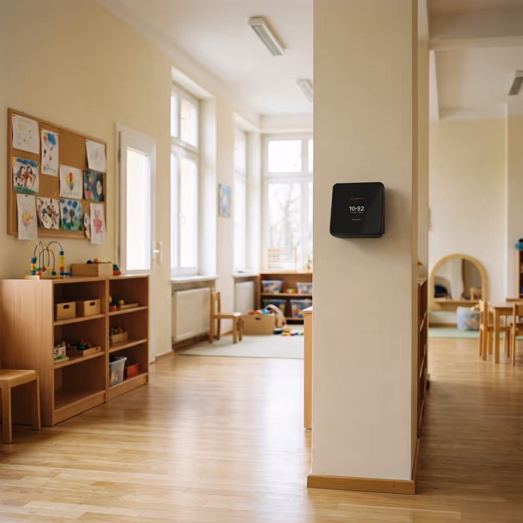 Das zeitstrom-Terminal hängt dort, wo dein Team sowieso vorbeikommt – zum Beispiel im Eingangsbereich der Wohngruppe, neben dem Büro oder im Pausenraum. Mitarbeitende halten ihre Karte oder ihr Token kurz ans Gerät und stempeln Kommen, Gehen und Pausen in Sekunden. Bei Außenstellen oder häufig genutzten Außenstandorten kann zusätzlich ein Terminal vor Ort eingesetzt werden, sodass alle Zeiten direkt digital im System landen – ganz ohne Zettel und Nachtragen.