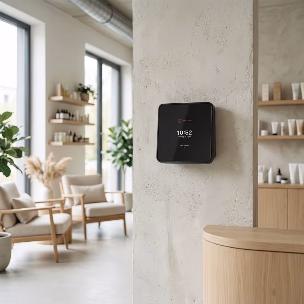 Im Kosmetiksalon hängt das zeitstrom Terminal typischerweise im Eingangs- oder Pausenbereich – dort, wo dein Team ohnehin vorbeikommt. Mitarbeitende stempeln beim Ankommen, vor und nach Pausen sowie beim Gehen mit einem einfachen Klick oder Chip in wenigen Sekunden. So werden alle Arbeitszeiten zentral erfasst, ohne Zettel, ohne Nachtragen und ohne dass du als Studioleitung ständig hinterherlaufen musst.
